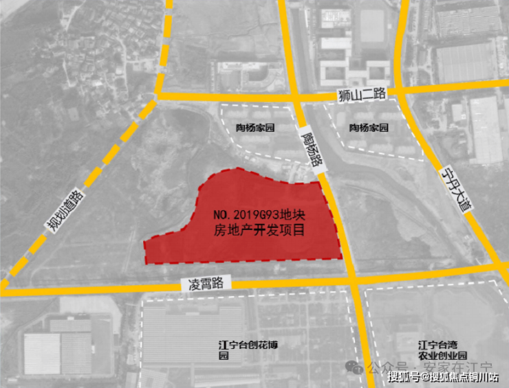 NO.2019G95地块与NO.2019G93地块一路之隔,位于南京市江宁区横溪街道云台西路以东、凌霄路(现状汤铜路)以北。