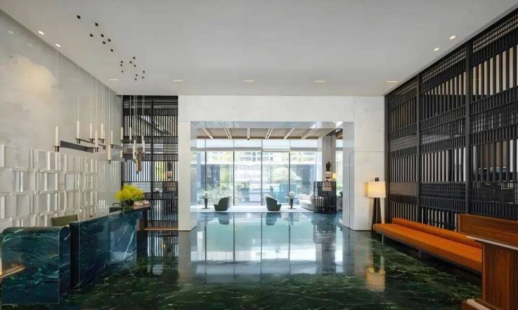 全长约158米的风雨连廊,巧妙地贯穿整个社区,营造了一种尊贵的无风雨归家景观享受。这个连廊空间体系不仅拓展了核心功能区域,更与周边庭院有机融合。连廊之中,精心布置的帷幔艺术虚廊,巧妙地将实与虚相融,打造出独特的穿行体验。无论晴雨,皆可在此悠然欣赏风景,享受从容的生活时光。
