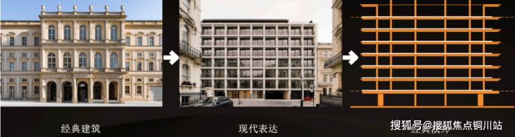 现代的秩序感中,结合古典美学的提炼融合:既有藏宝立柜高低错落线条韵律感的体现,又有经典三段式的演绎,再加上意大利古典帕拉迪奥母题柱系语言的融入与转译,内凹型的柱式结构再创经典,让厚重的建筑语言有了更轻盈的展现。