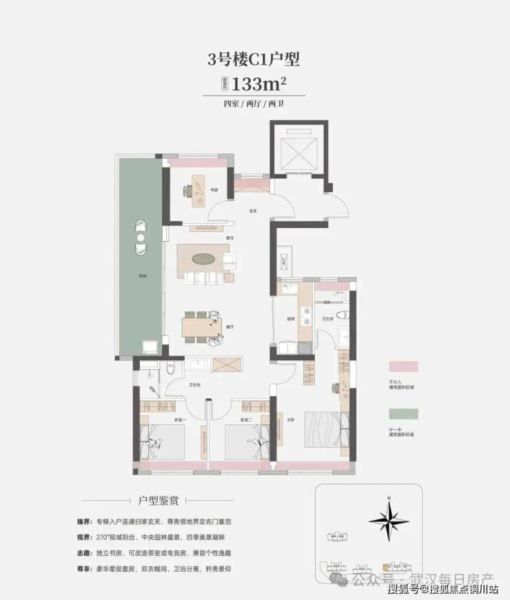 2、新增建面约125平南北通透边户,作为小面积段边户非常难得,与建面约133平户型同样可享专梯入户体验,毫无疑问是爆款。
