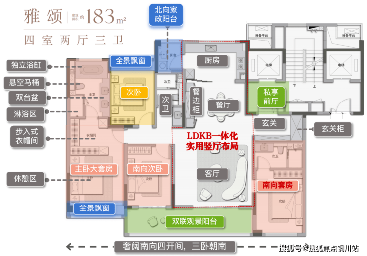 尺度升级,拥有独立家政间,高端豪宅必备!引入“南向双套房”舒适搭配,三代同堂都无压力,尊重每一代人的私密需求。