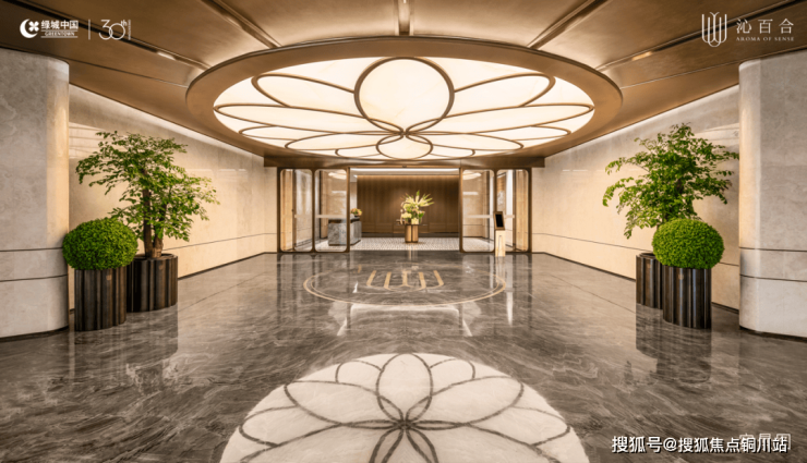 绿城沁百合打造板块内zui大的约40米恢弘门头,第一眼的尺度感足以让人惊艳,再搭配金色百合花瓣吊顶,直接升华为文化地标级的入户大门!