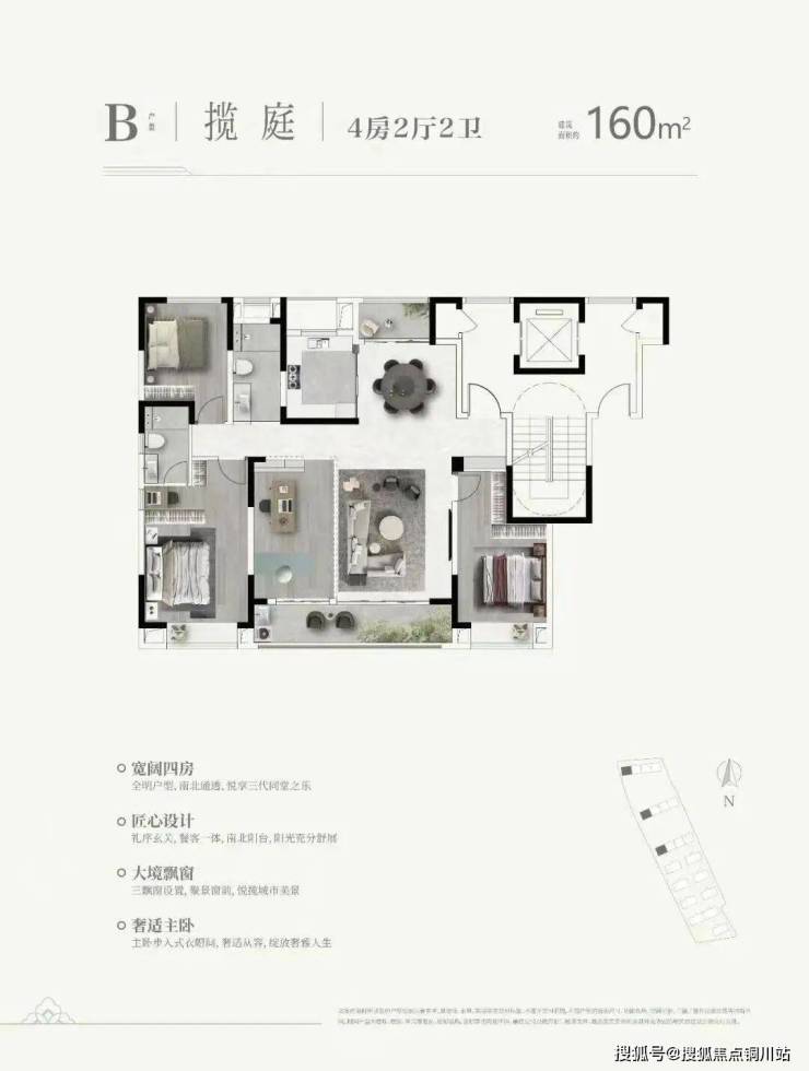 洋房采用电梯独立入户、南向四开间布局,南北双阳台,多飘窗、主卧套房、U型厨房以考究的宽境布局尺度,对话高净值人群。