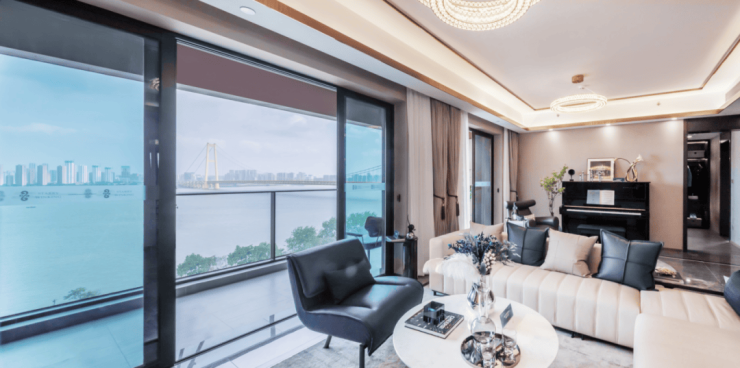 站在阳台上,拥有一线江景,享受约50米瞰江距离和约1800米无遮挡江面,这是属于少数人的“私家观景面”。楼下就是四大滨江公园和约1.7万方的大师园林,放眼望去,树木郁郁葱葱,屋内是舒适自我的空间,屋外是绿意绽放的公园,生活不再局限于社区,与自然无界交融,有了更广阔的链接。