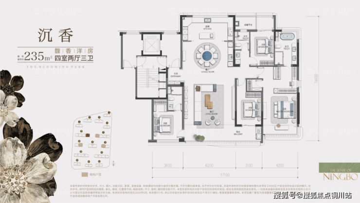 主卧标配双衣帽间、独立梳妆台与观景浴缸,尽显尊贵。LDKB一体化通厅达90㎡,玄关柜体嵌入水槽设计,收纳系统较传统户型提升40%,兼具实用与美观。全屋智能家居系统,山茶花艺术符号融入门把手、石材拼花等细节,精致无处不在。