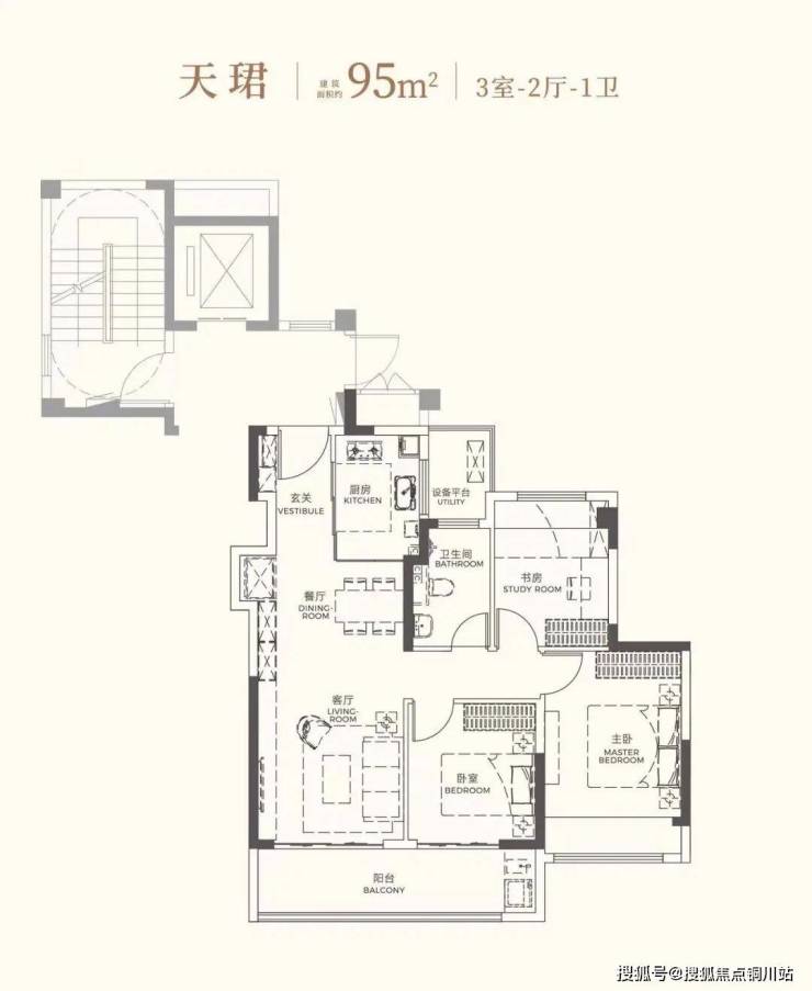 建面约95㎡户型,以LDK一体化方厅与约6.3米南向双阳台的融合设计,打破隔阂,引景入室,在有限面积内创造出开阔的视觉与互动场景,满足年轻家庭的成长所需。