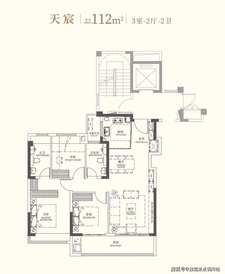 建面约112㎡户型,则通过南向三开间、约6.65米宽景阳台及奢阔主卧套房设计,科学划分动静区域,在共享天伦的同时,为每位家庭成员守护私密与尊严,从容应对多代同堂的改善需求。