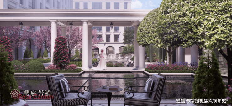 浪漫街角的【女王花园】,融和了克罗耳《玫瑰》与马恩河谷玫瑰园的金属拱券等摩登情境,以法式拱券、玫瑰藤架和口袋广场,成为女王户外社交主场。