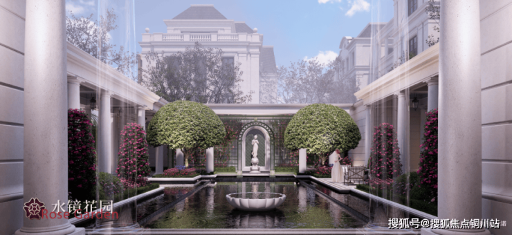 静谧诗意的【水镜花园】,融入对称性的理性美学打造,构建出拱门与廊柱的优雅轮廓与完美比例,是罗德里格斯《塞维利亚花园的夏日印象》与法国卢森堡公园美第奇喷泉的灵感复刻。
