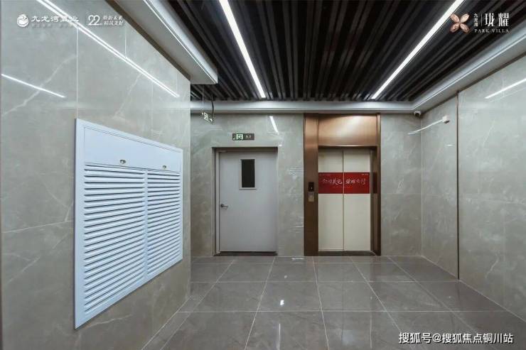 在公区的打造上,九龙湾·珑耀的匠心也非常突出,墙地面大理石砖满铺,深色格栅吊顶,电梯选用温暖的古铜金色面材,整体仪式感拉满。