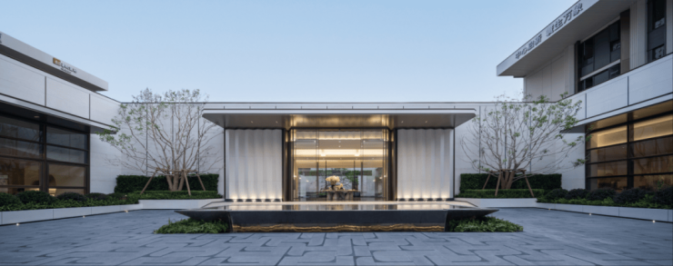 项目汲取顶奢酒店的雅奢理念,门庭呈现仪式感和隐奢感,匹配从世界归来的居者从容气质。在建筑立面上提炼江城建筑、人文、自然之精华,聚焦长江流金的意向,让建筑仿佛垂立于城心的一抹长江金。