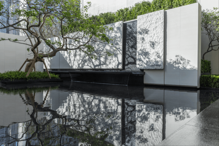 项目园林景观以“引水琢玉 引江入园”为核心理念,以长江为脉,将长江的灵动气韵与壮阔意境融入园林细节,让水景、绿植与光影交织成趣,让居住者感受长江的脉动与自然的馈赠。