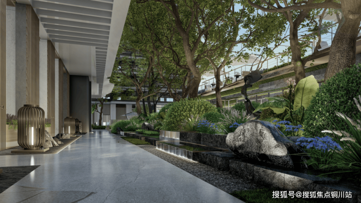 项目以大师手笔匠造立体景观园林,搭配半围合的布局以及内部层峦叠翠景观绿植。游走其间,仿佛置身于天然的山体公园中,所谓世外之境,也不外乎如此。
