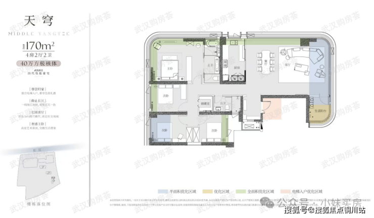 看江视野最好的1号楼总高42层,两梯两户,主打240平户型;