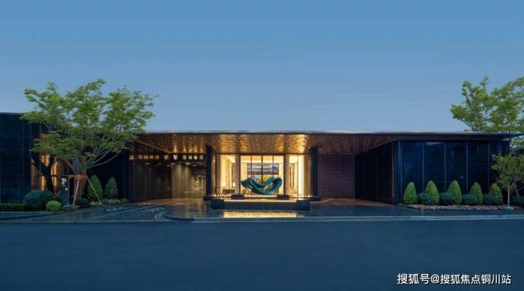 迎龙观月大门,一座融合龙鳞元素的雕塑即刻映入眼帘,挑高大门彰显恢弘气度。