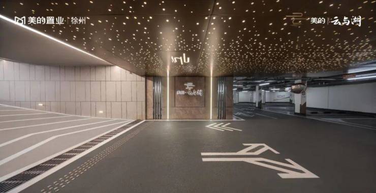 地库内顶棚灰色防霉涂料、地面环氧地坪,保证环境防潮且耐用,每栋楼皆酒店式双入户精装大堂,地库入户大堂前光厅采用古铜色铝方通搭配成品软膜天花,细节由大及小、场景功能融入生活。