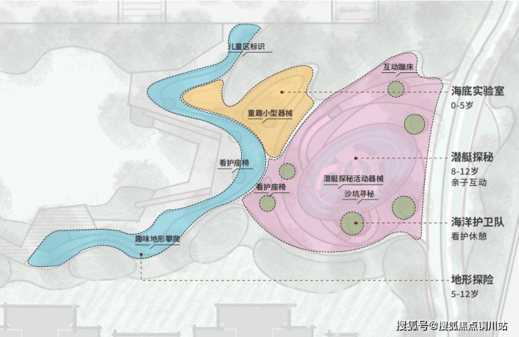 不仅如此,它还创新性提出了“儿童友好型社区”理念,把不同成长阶段段的儿童再做进一步细分,营造适合启蒙、成长、运动、社交的园林场景。