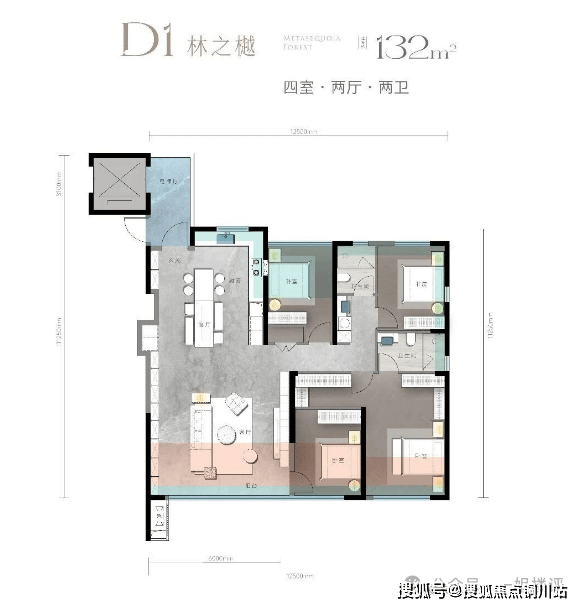 建面约126平四房两厅两卫:该户型是城投红树林全新推出的四房。