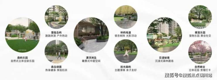 在对项目地块价值的深入解读之后,设计师发掘并重新定义项目地块和汤逊湖的关系——在浩瀚湖水中漂浮的绿洲岛屿。以此关系为依托,并结合地块内部的自然高差特点,提取了“静谧浮岛,惬意时光”的设计主题。在社区内采用“一环三境九岛”的设计手法,营造一个城市“岛居”的生活家园,将度假氛围感拉满。