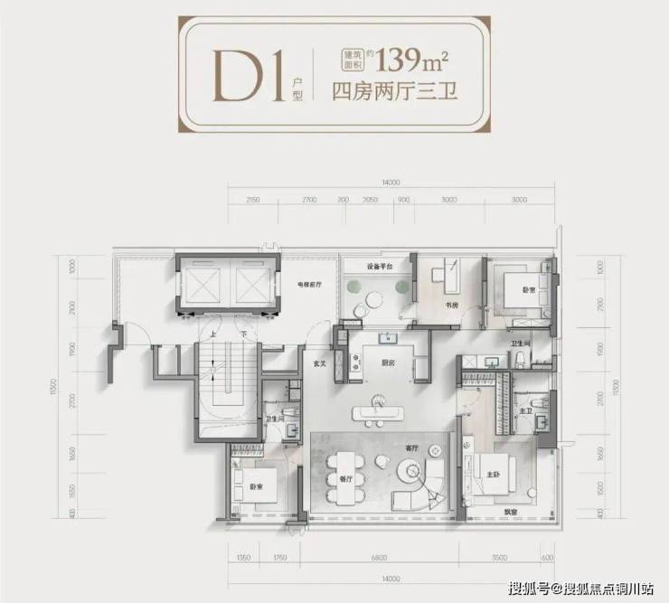 而且,建面约139㎡户型室内实际空间使用率也高达92%,创新设计为4+1房三卫格局,厨房北侧设备平台可改造为小阳台或拓展为小房间,这一户型设计,在当前市场同类产品中表现突出。