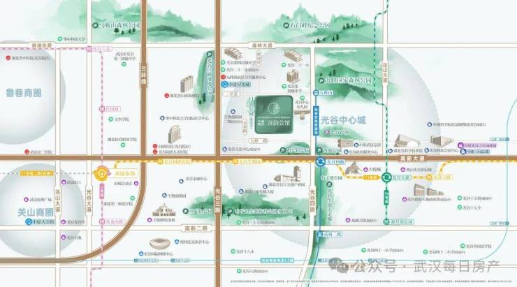 该项目配置有地下中央车站,方便业主归家与出行。汉韵公馆是光谷首个全风雨连廊项目,让业主回家更从容。
