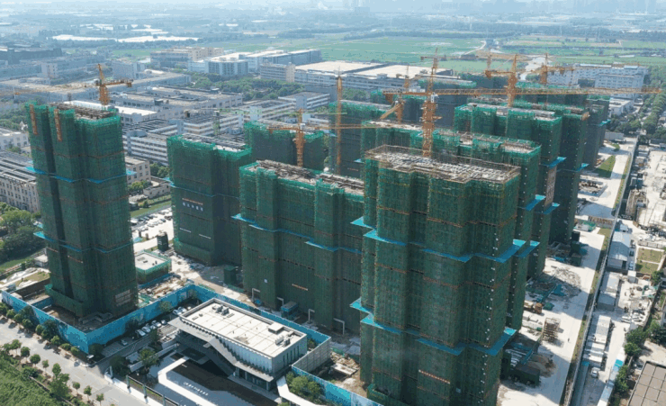 7月底北区基本实现全面封顶,8月二次结构作业持续开展,这是工程进度的稳步推进。