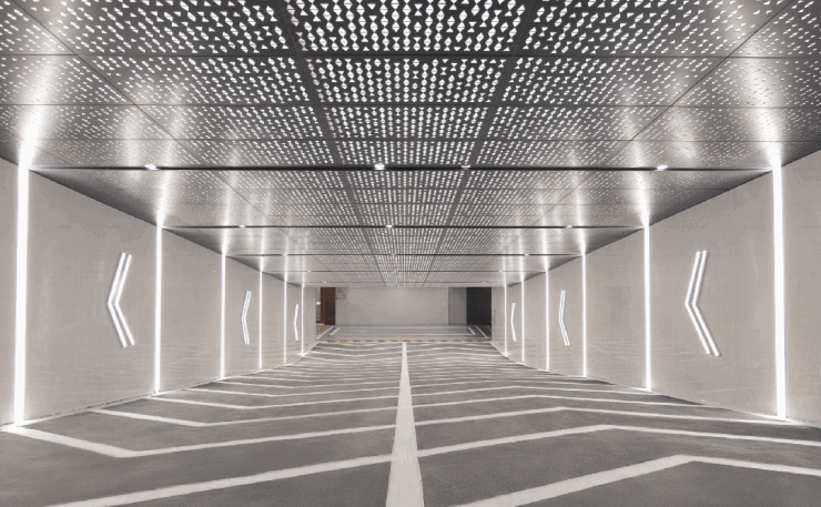 地下车库同样是超预期呈现,仿佛进入了一条星光隧道,顶棚一体化星空顶设计,与两侧灯光呼应,点点星光尽显奢华,高级的质感与气场,尊崇感不言而喻。
