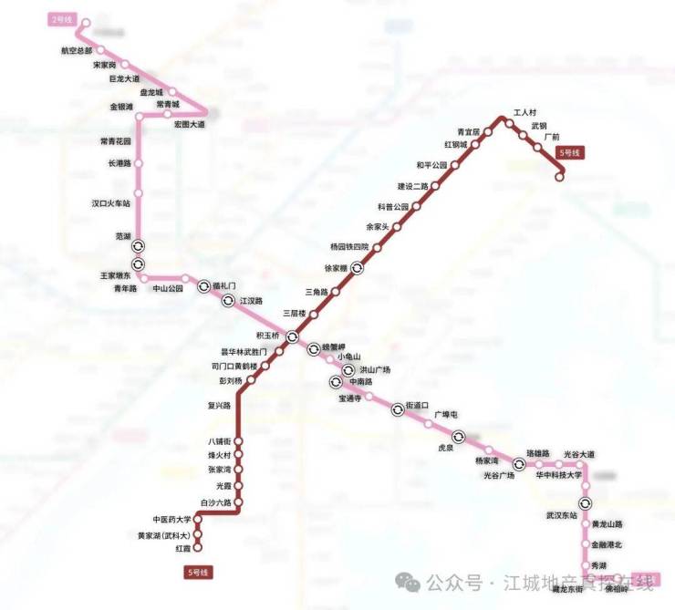 二轨二桥二隧:双地铁上盖,无缝衔接积玉桥站2号线、5号线;依托长江大桥、长江二桥以及长江隧道和武汉公铁隧道,快速纵横全城。