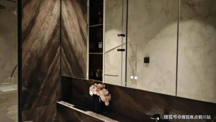 再如,卫浴收纳细心。镜柜内置化妆镜,预留两个给电点位,无忧使用电吹风、电动牙刷充电。主卫美妆冰箱精准控温、智能魔镜很懂女生哦。