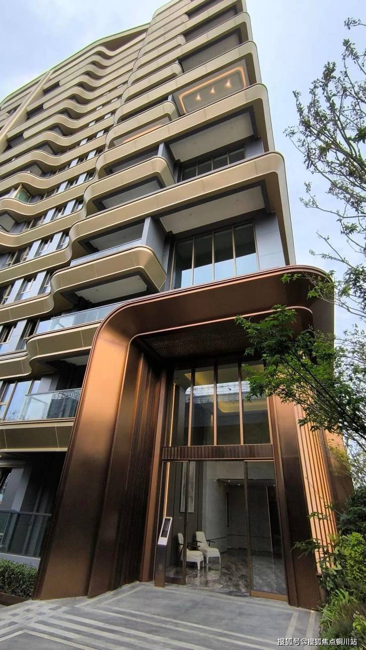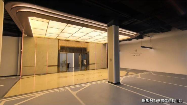 中巍云山墅的入户大堂 由 劳斯莱斯曲线香槟金铝板、金属一体板、落地Low-E双银玻璃等组成, 曲面的细节结构 体现了奢华感和灵动感。