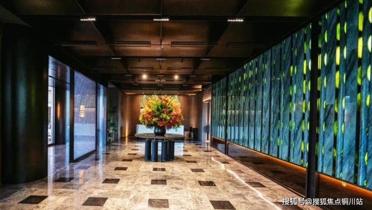 第三重为层高局部约4米、拥有宝格丽外墙岩板和大尺度云石透光吊顶、带约3.8米电动平移门的优雅归家光厅。