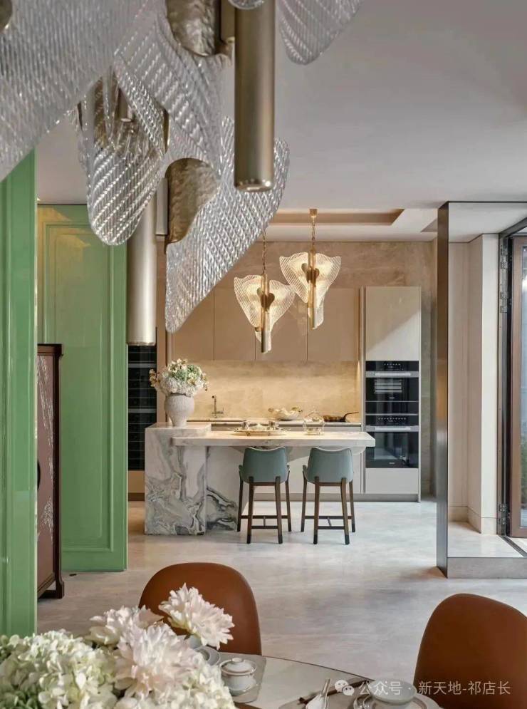 当Art Deco几何纹样与海派花砖暗纹悄然呼应,空间便完成了对新旧共生的又一诠释:所有物质都在克制表达中,回归生活本真的呼吸节奏。