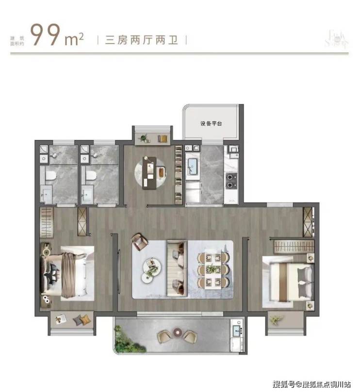 其中建面约99㎡洋房户型相当惊艳,四开间朝南,且为横厅三房两厅两卫设计,给予业主大户型才有的居住体验。