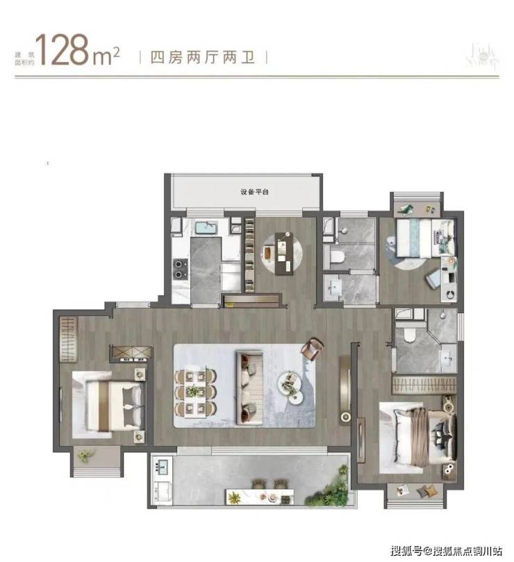 除了建面约99㎡的洋房户型,还有建面约128㎡的小高层户型,两者户型格局相似,皆为四开间朝南设计,约6.5米横厅室内更加宽敞通透,未来家中开个Party也能轻松容纳。