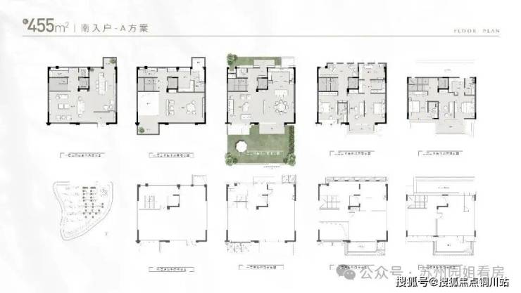 别墅户型约415-455-525㎡,全盘就96套左右,总价约3300-500万。
