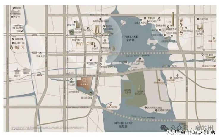 北侧直面金鸡湖,出门即地铁5号线,周边被国宾一号、铜雀台等10万+豪宅环伺,完全演绎“出则繁华、入则宁静”。