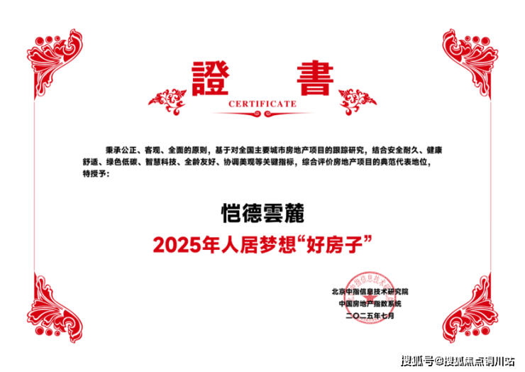 当行业聚焦“好房子”新标准,恺德集团以现象级红盘【恺德雲麓】交出革新答卷!2025年7月,在杭州由北京中指信息技术研究院主办的“中国房地产大数据系列报告会暨2025上半年市场总结及下半年趋势预判”会议上,恺德雲麓项目凭借“真四代”产品力,革新城市人居封面,喜获2025 年人居梦想“好房子”荣誉!