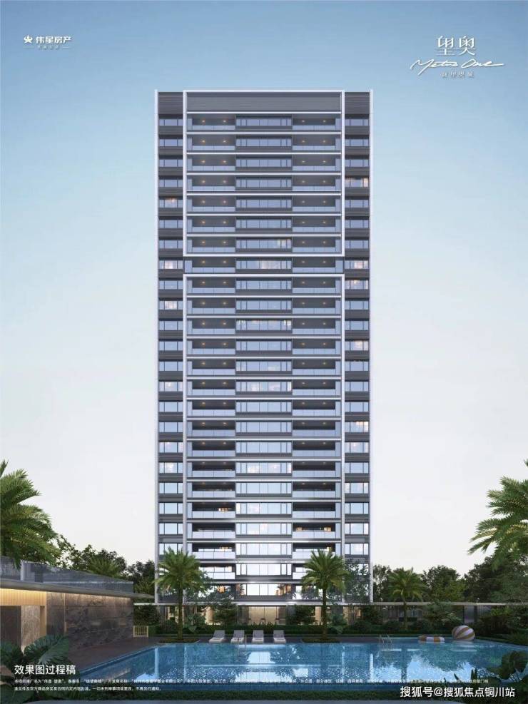 伟星·望奥」也是板块内首个三面铝板的新盘,再配合大面积玻璃,更显轻盈质感,据说玻璃面连续长度最大约9米。建筑顶部还有“悬浮云端”的格栅塔冠设计,让建筑的视觉效果更加沉稳,也更具识别度。
