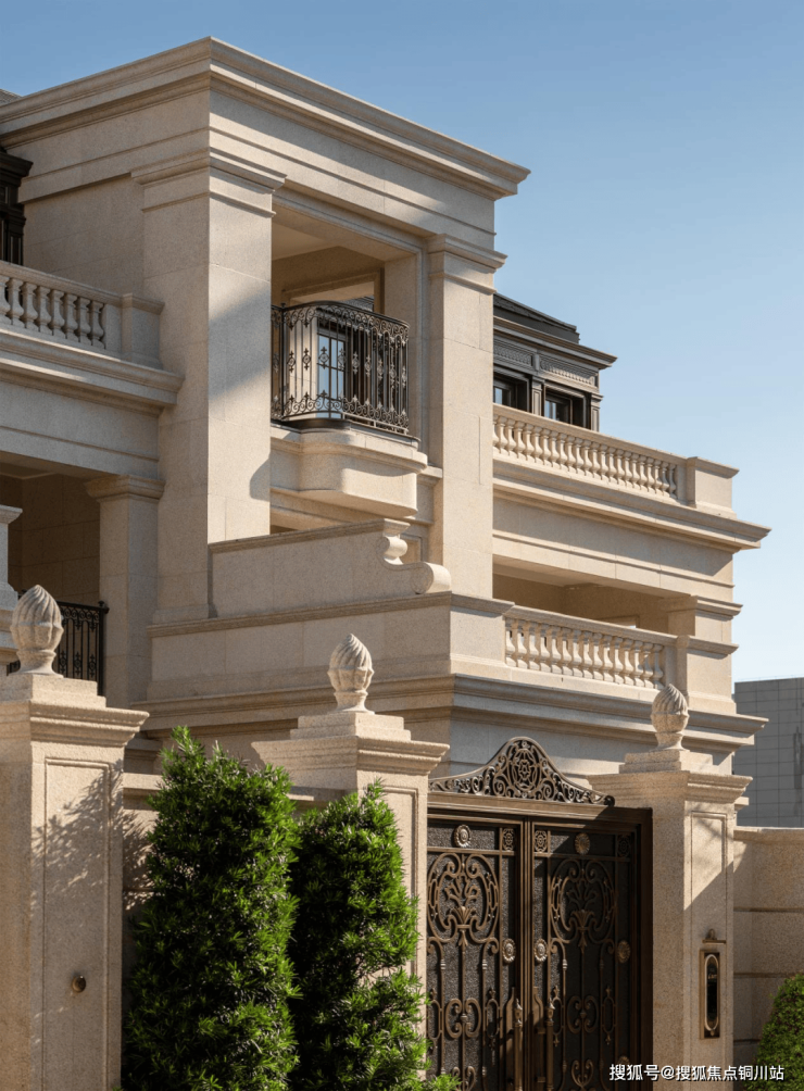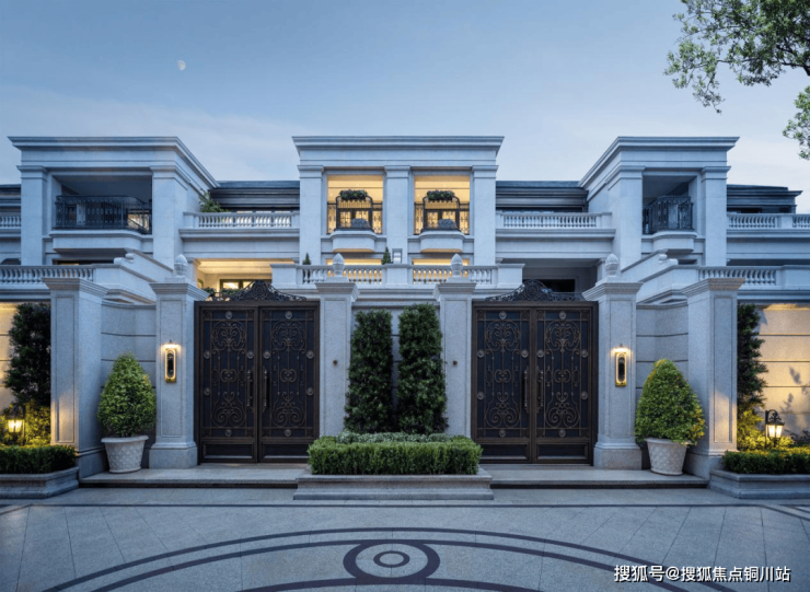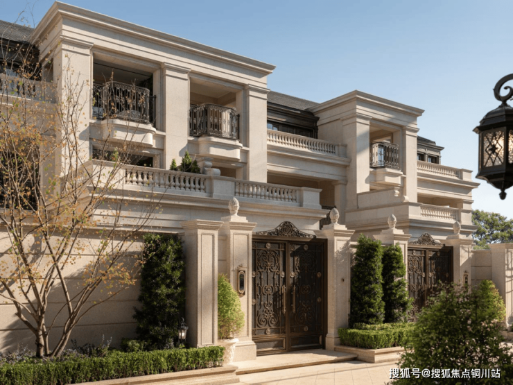 再看云栖玫瑰园法式合院,充分展现“一层一世界”的空间精髓。深褐色陶瓦孟莎顶勾勒庄重天际线,精雕塔斯干柱形成仪式感入户序列,每一户的门口,都设有专属门牌号,定制大门搭配都铎玫瑰纹样铁艺栏杆,就连入户门锁都是绿城高端定制版,精准地将法式优雅融入归家每一步。