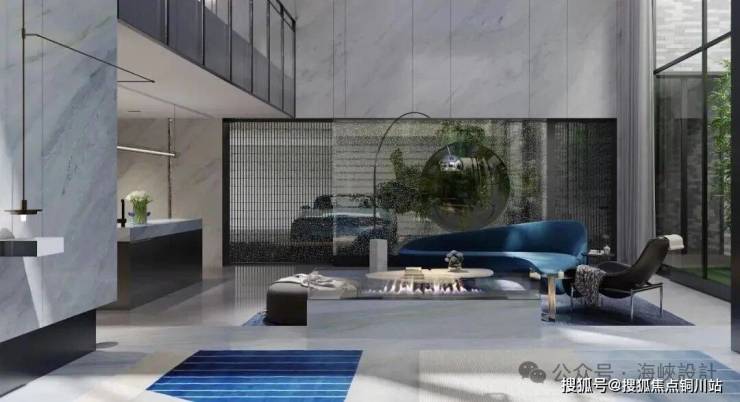 以"晴山藍"爲主色調,結合先鋒時尚的潮流設計和電競場景等創新元素,營造出如高奢度假酒店般的居住體驗,彰顯科技感與現代美學,爲在商海上忙碌拼搏的時代菁英,打造一處潮流中可享閑適與意趣的理想生活空間。