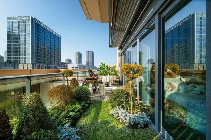 比如其一“自然感”,通过错层悬挑的设计,带来了约6米挑高的户属绿化平台,即使在城市中心也能享受自然乐趣。