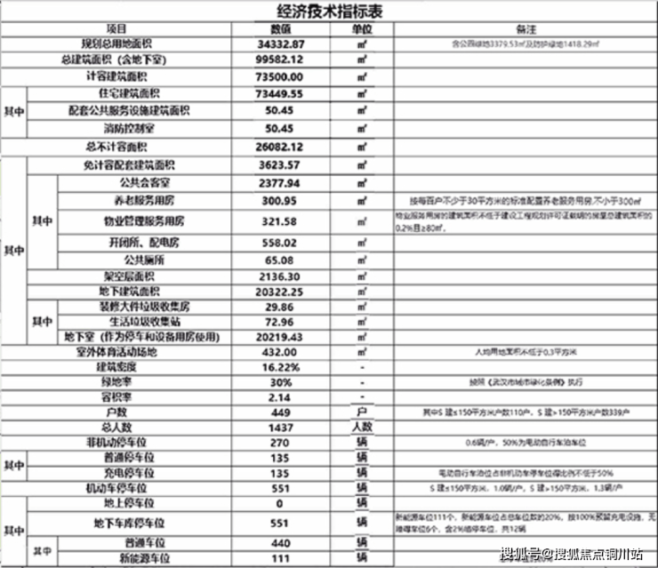 从项目的经济技术指标来看,项目净用地面积共34333㎡,容积率2.14,计容建筑面积73500㎡,住宅计容建筑73449.55㎡。