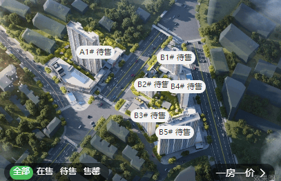 项目一共有A、B两个地块。其中A地块仅有A1#一栋楼,33层,2个单元,位于卓刀泉南路西侧;B地块有5栋楼,其中B1#、B3#、B4#17层,1个单元,B2#11层,1个单元,B5#33层,1个单元,位于卓刀泉南路和虎泉街交汇处。