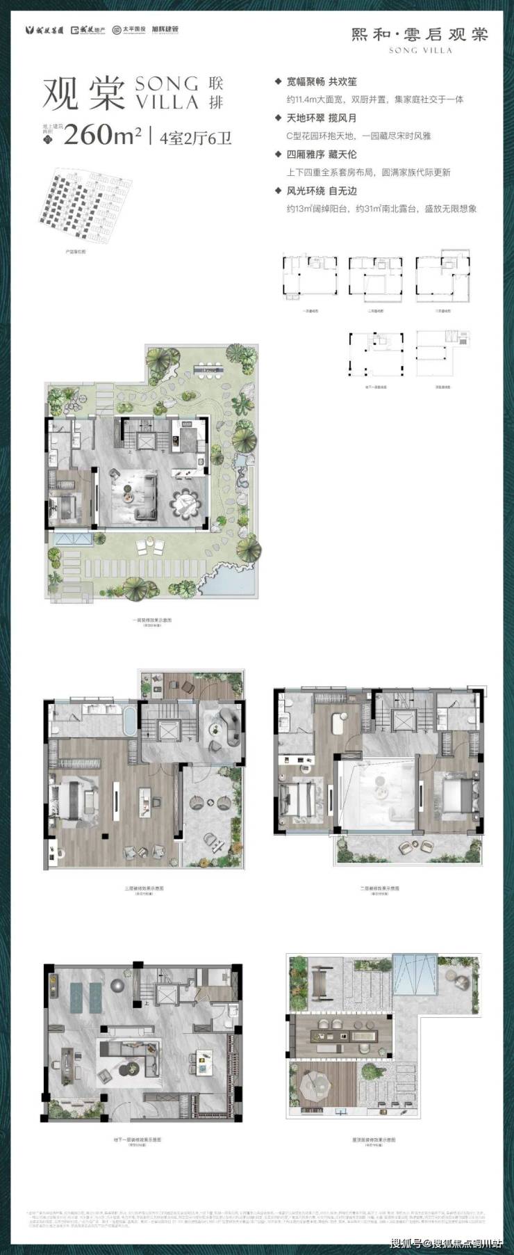 在一个容积率动辄2.0以上的时代,项目以罕见的1.01超低容积率,纯粹规划了24栋联排与11栋叠加产品,全盘仅276席。