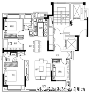 1) 125㎡户型为现阶段市面上少有的3+1房户型,与传统宽厅设计相比,功能性更强,“+1”空间与北侧卧室之间非承重墙设计,可打通扩大次卧空间尺度,增加舒适度,也可作为独立功能空间使用,灵活度较高。