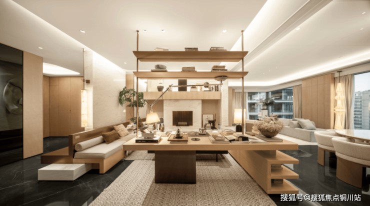 在建面约325㎡的户型叙事中,客厅开辟的家庭图书馆,正沉淀着家的精神底色。整面书墙与客厅分而不离,形成一个专属的沉静区域。它是家的文化内核,是快节奏生活中的精神绿洲。午后,这里是孩子的阅读乐园;深夜,它是您卸下疲惫后的“充电站”。在书香与咖啡香的交织中,与思想对话,让诗与远方,在日常中触手可及。