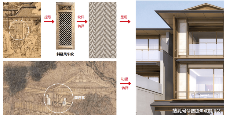 以宋代建筑智慧为灵感内核,将传统美学融入现代人居。迎龙观月深研北宋建筑规范著作——《营造法式》,发掘宋代宫宇外檐构件“障日䈳”遮阳避风之妙用,沿袭其构造精髓,撷取传统风车纹纹样,于露台之上构筑精致格栅。天地万象与格栅虚实相映,模糊室内外界限,既能保证270°环景采光,又以精密角度计算实现避风保温与私密保障,成就传统风雅与当代奢居的共生范本。