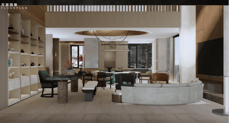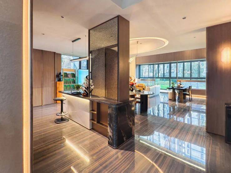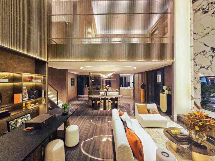 绿雅集团承建的绿城·桂语江南236㎡叠墅样板间精装修工程项目,以“一园、一街、一院、一轴、一组盒子”为空间肌理,融合精工匠造精神,于细节中铺陈东方气韵,将其自然融入当代人居体验。