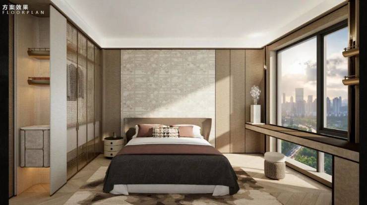 ▲主卧效果图及实景图