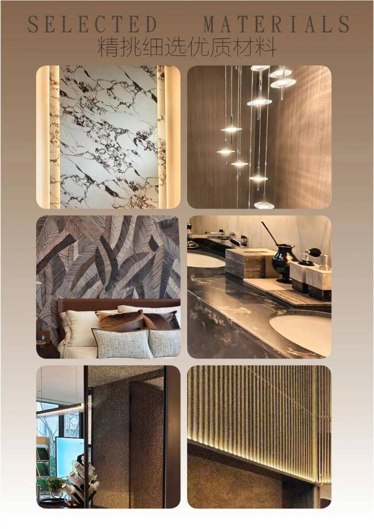 绿雅团队协同设计师反复遴选材料,在实际光线下进行对比,结合空间色调与灯光方案,完成小样测试与封样。无论是石材肌理、木饰面色系过渡,还是金属玻璃的反射效果,均经反复校验,力求与效果图高度一致。